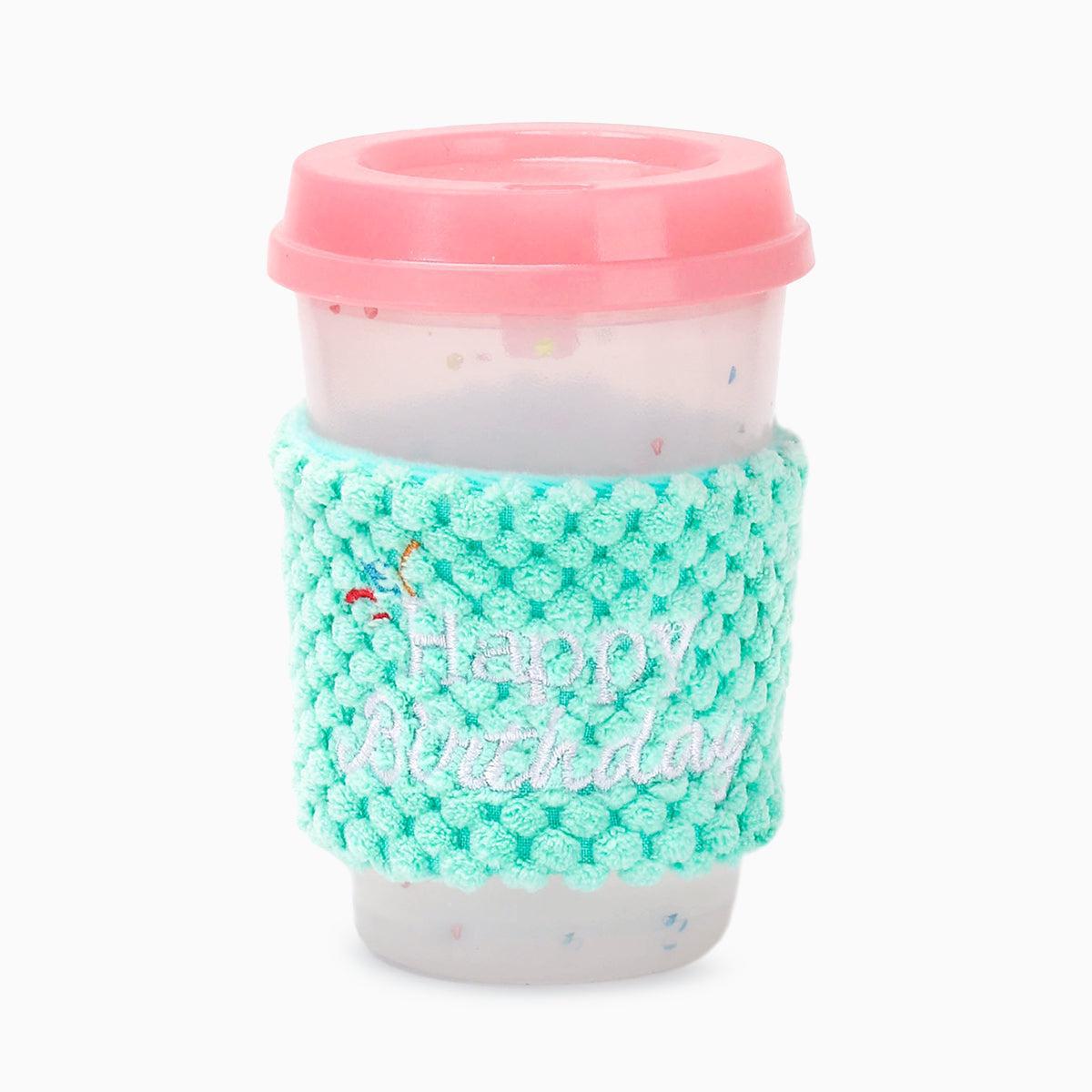 Happy Barkday to your fur-baby! This toy features a squeaky rubber coffee cup wrapped in a plush, crinkly birthday sleeve for a mix of textures and sounds. The fabric layer is removable, turning one toy into two for double the fun! Built for long-lasting chews and play, this toy is a must-have for any celebration. Plus, its vanilla scent will keep your dog partying all day long!
